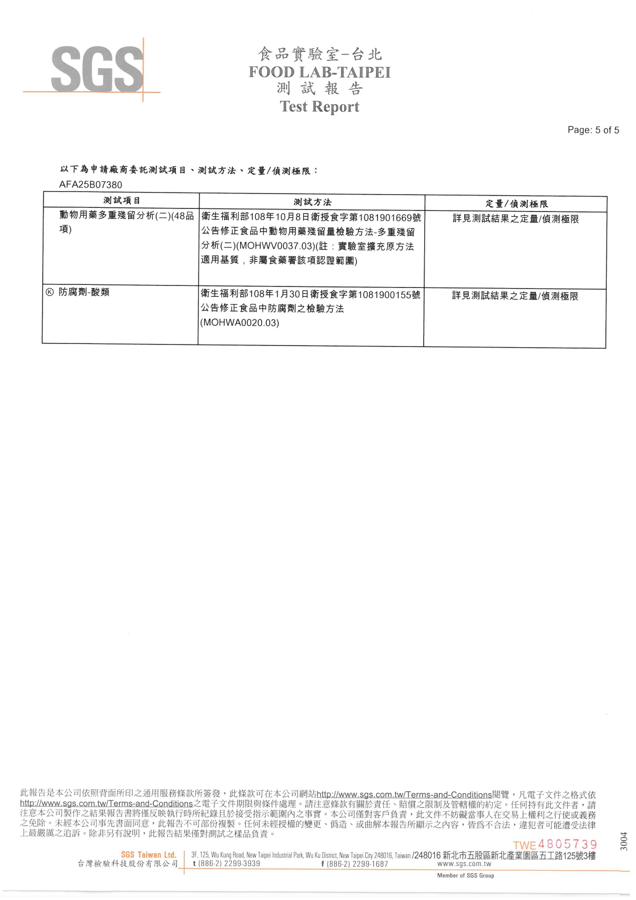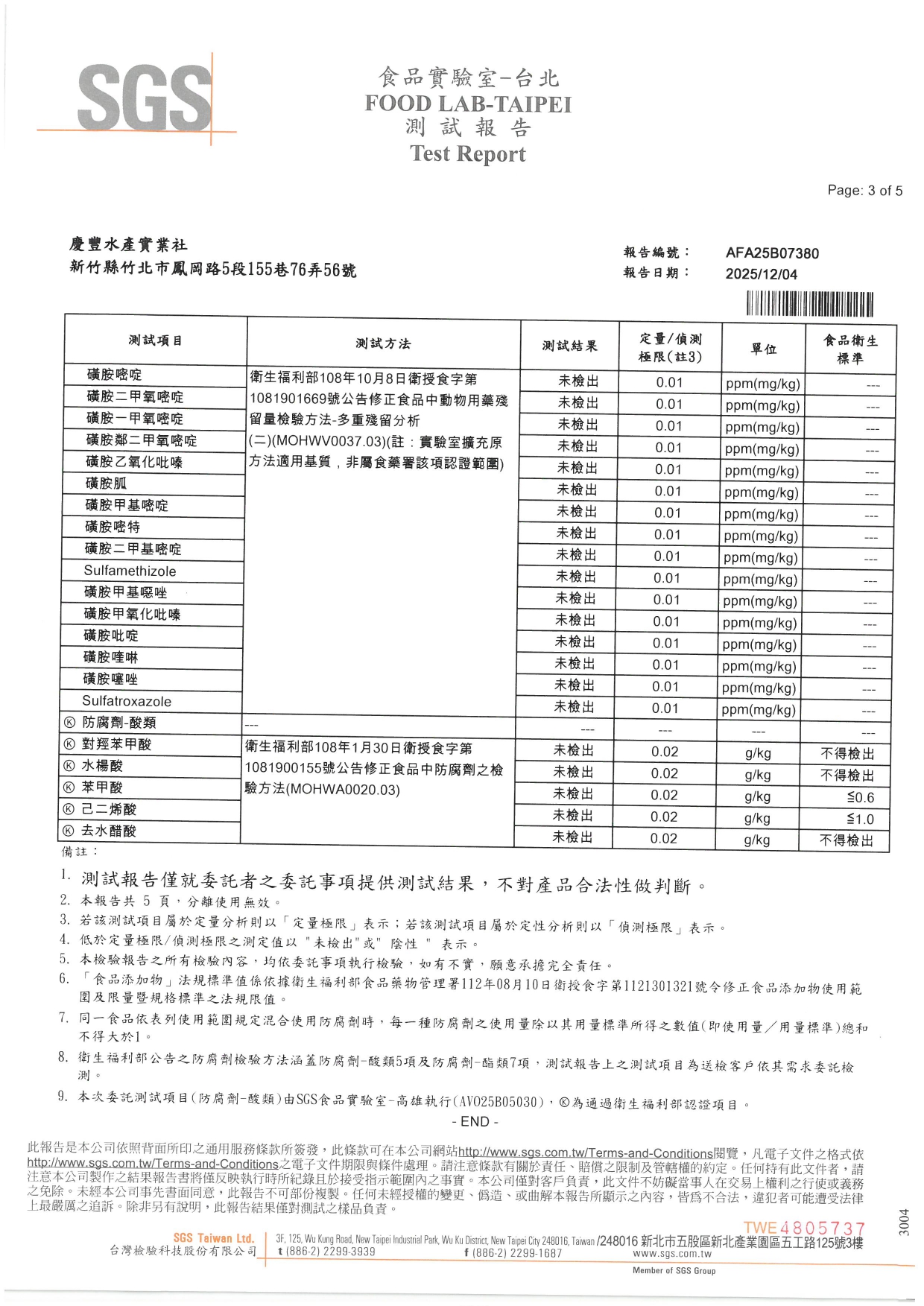 SGS報告編號:AFA25B07380