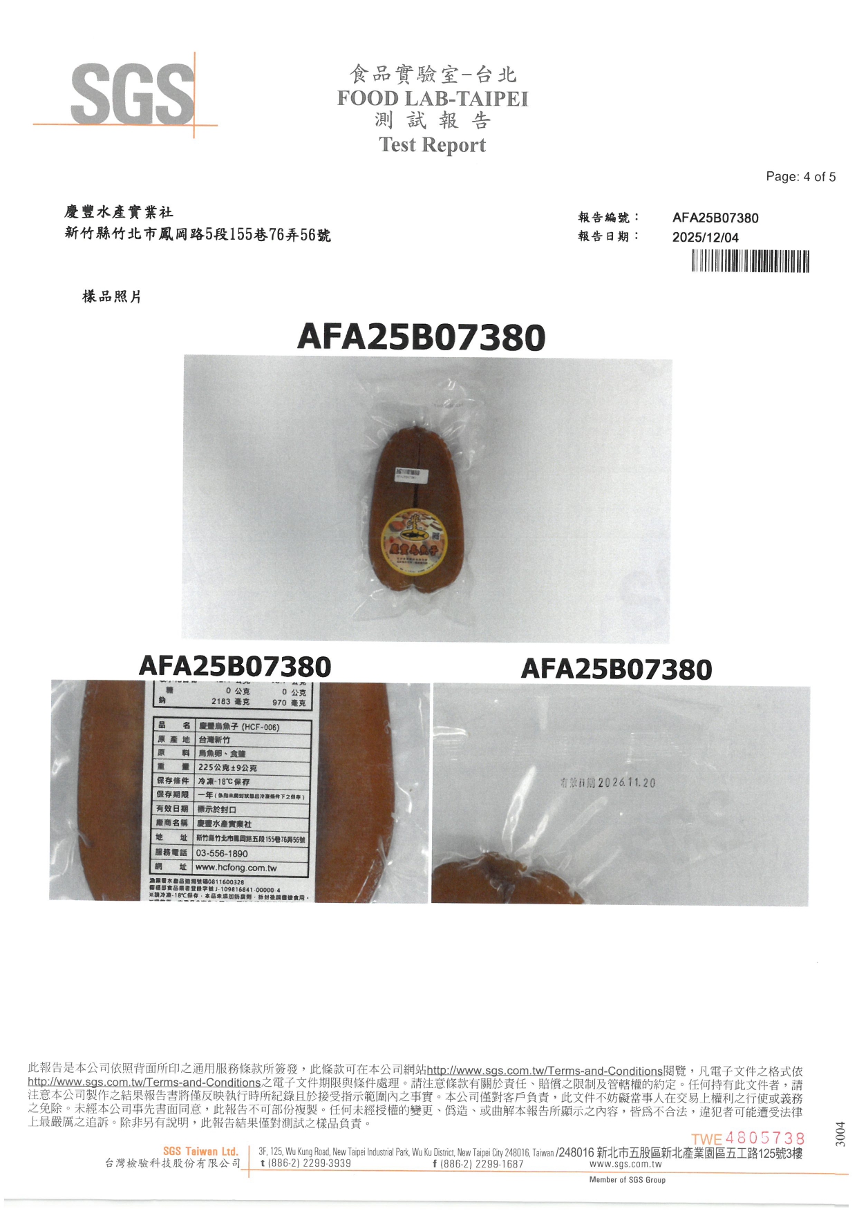 慶豐烏魚子-SGS檢驗報告