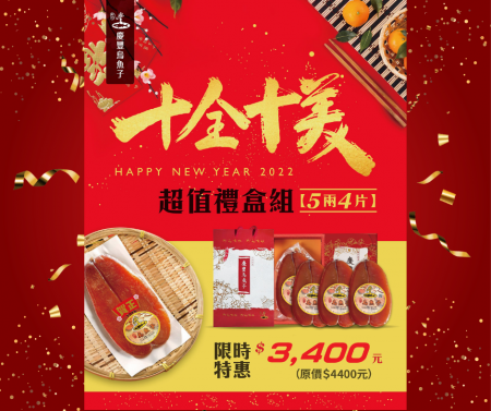 富貴迎春,十全十美!賀歲超值烏魚子禮盒~霸氣五兩重x四片入。