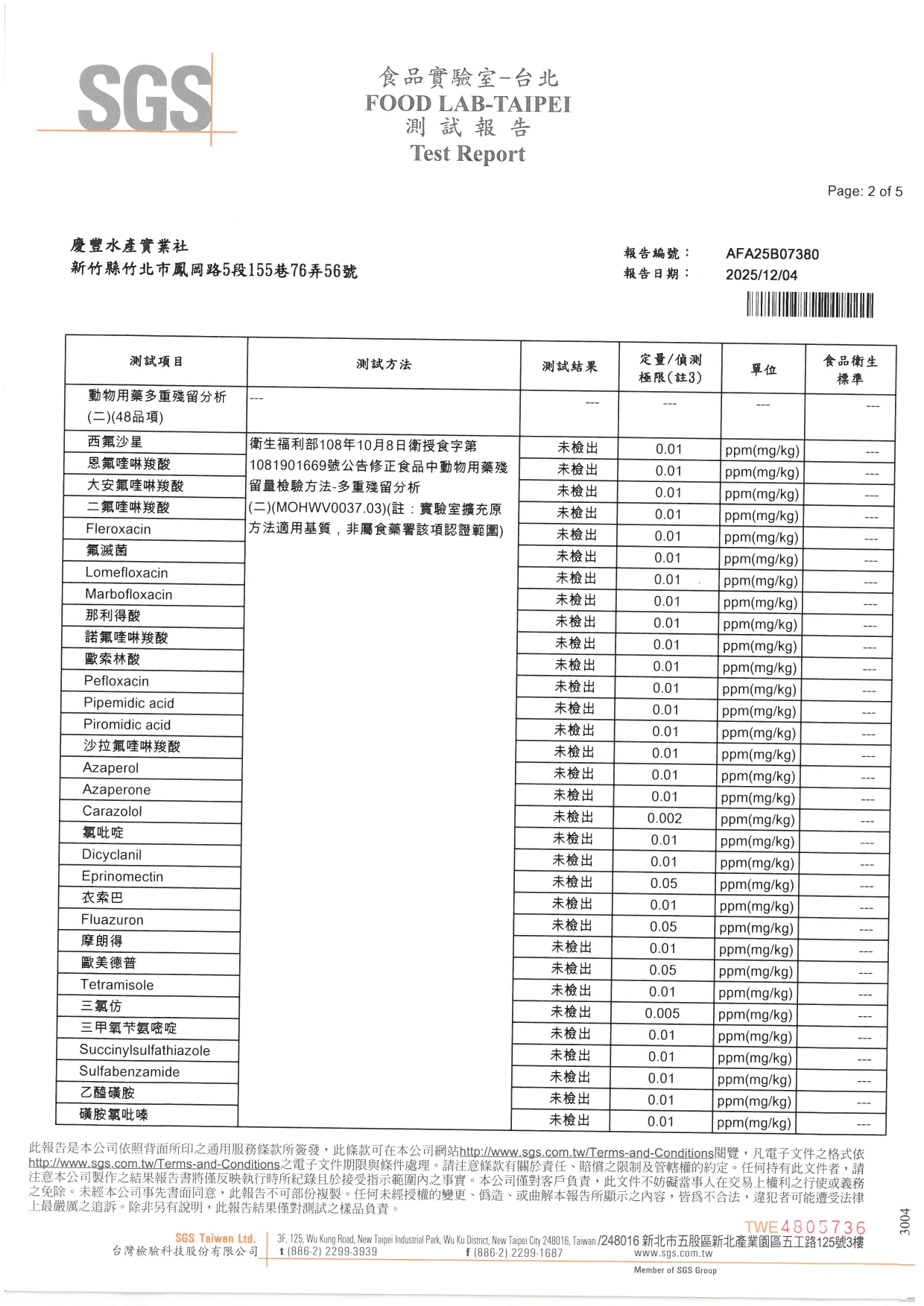 SGS報告編號:AFA25B07380